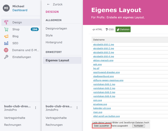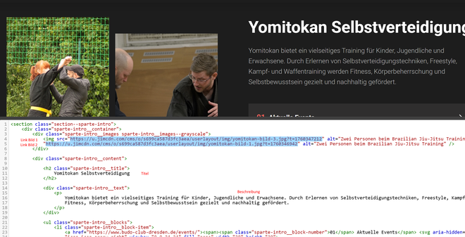 3. Obere schwarze Schrift bearbeiten: Hier kommt der Titel der Sparte hin z.B. Kendo