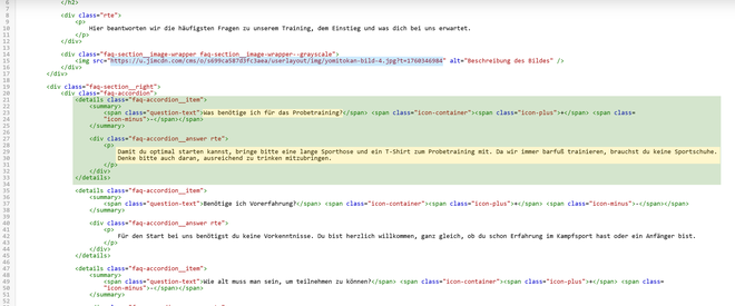 -> Jede Frage mit Antwort ist ein <details> </details> Block (grüngefärbt). Diese können entfernt oder kopiert werden, um Fragen zu entfernen oder mehr hinzuzufügen