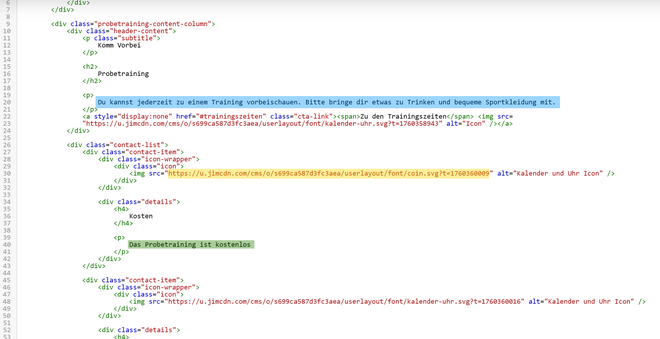Um eine neue Kampfsport-Sparte hinzuzufügen am Besten im Naviagtionsmenü eine bereits existierende duplizieren und im Anschluss bearbeiten