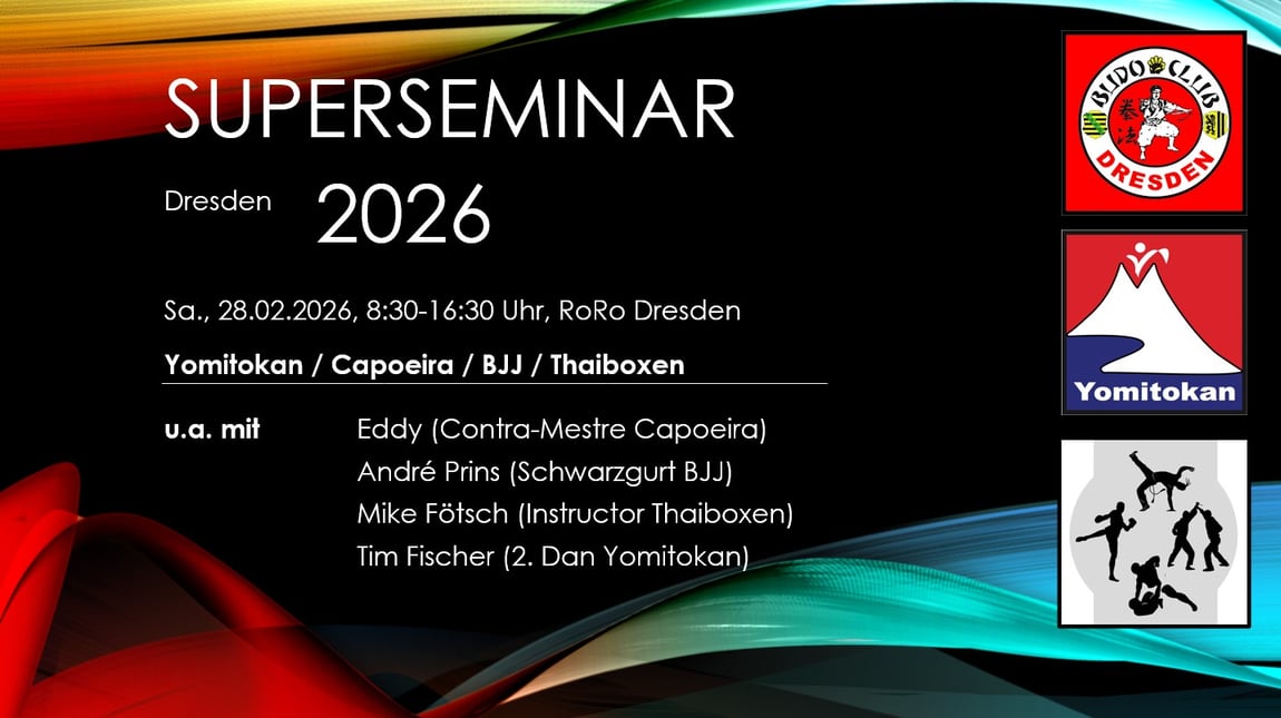 Mitzubringen sind: Trainingsanzug, Budopass, Trinkflasche